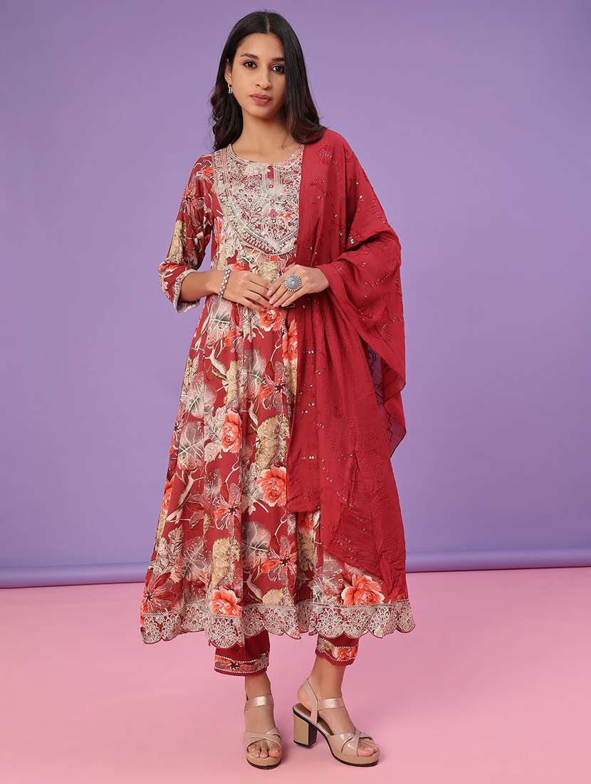 - Find gorgeous sets of ethnic wears in trending designs in maroon colors suitable for casual wear of occasions.