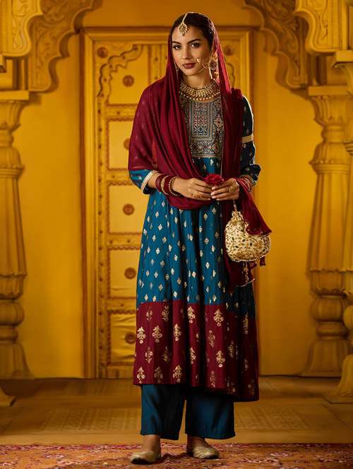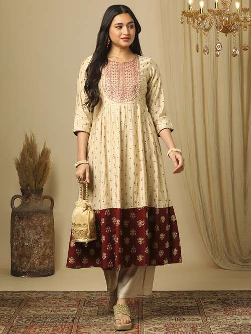 - Find gorgeous sets of ethnic wears in trending designs in maroon colors suitable for festive wear of occasions.