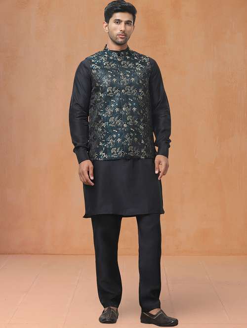 - » men solid mandarin neck kurta pyjama with jacket ethnic wear set