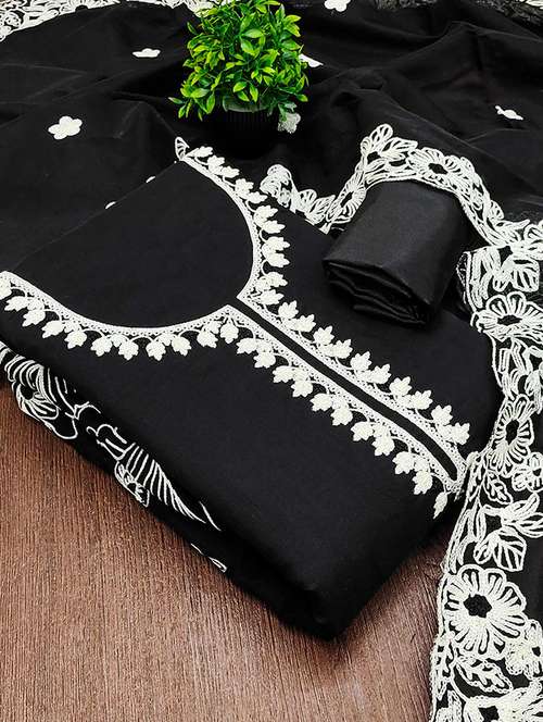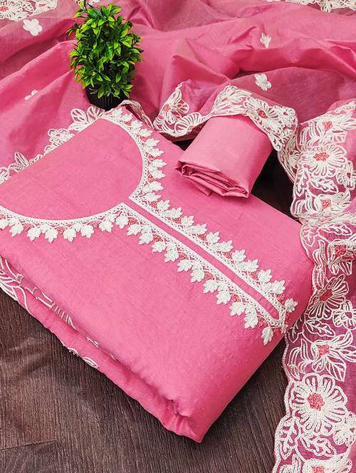 - » women solid with work embroidered unstitched suit set