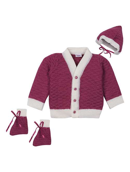 kids self designed sweater with woolen scoks & cap