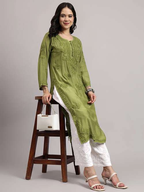 - » women long sleeve chikankari straight kurta