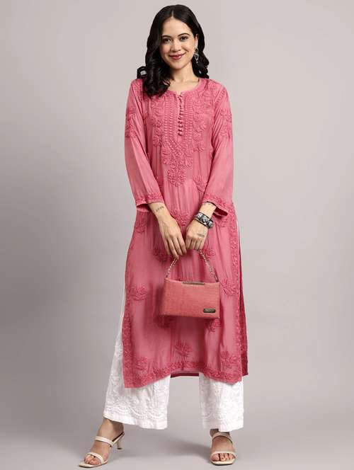 - Look pretty in a kurta from THE CHIKAN LABEL and get it in mauve. LimeRoad has something for everyone.