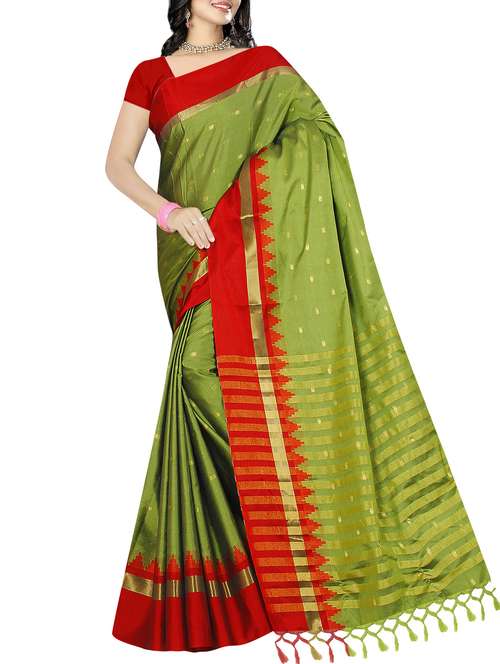 contrast zari border banarasi saree with blouse - 15786252 - Very Small Image - 1