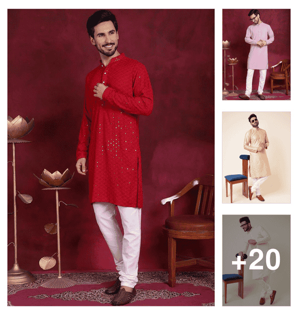 men embroidered mandarin neck kurta pyjama ethnic wear set
