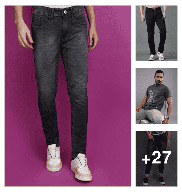 men plain mid rise full length jeans