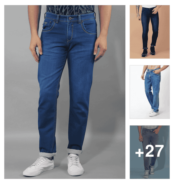 men plain mid rise full length jeans