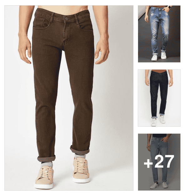 men plain mid rise full length jeans