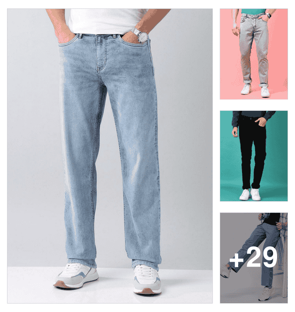 men plain mid rise full length jeans