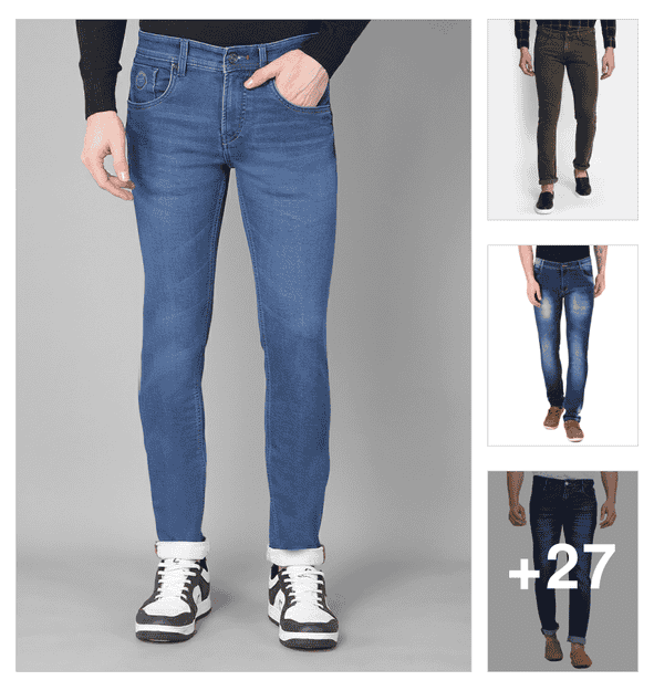 men plain mid rise full length jeans