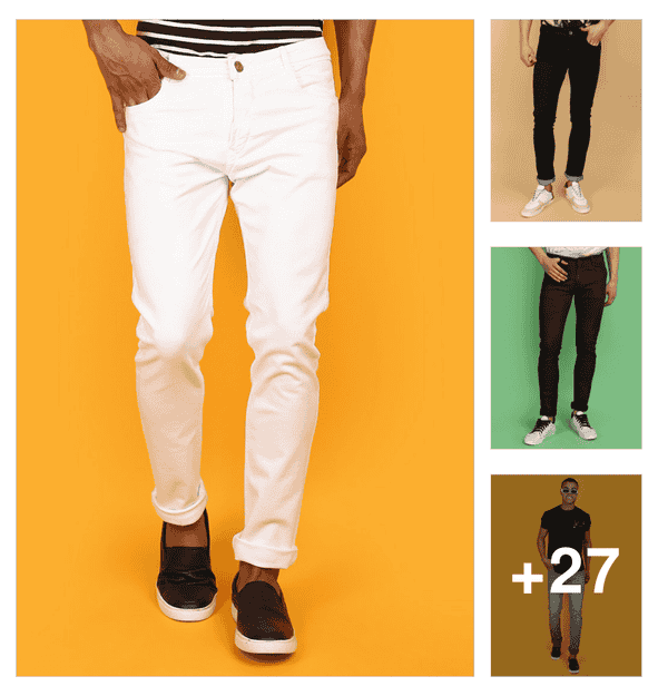 men plain mid rise full length straight jeans