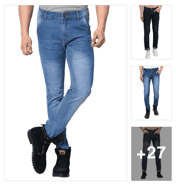 men plain mid rise full length jeans