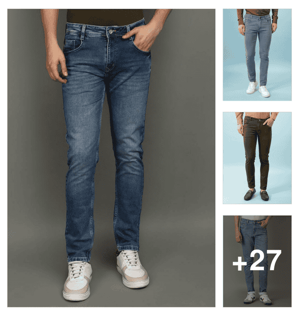 men plain mid rise full length jeans