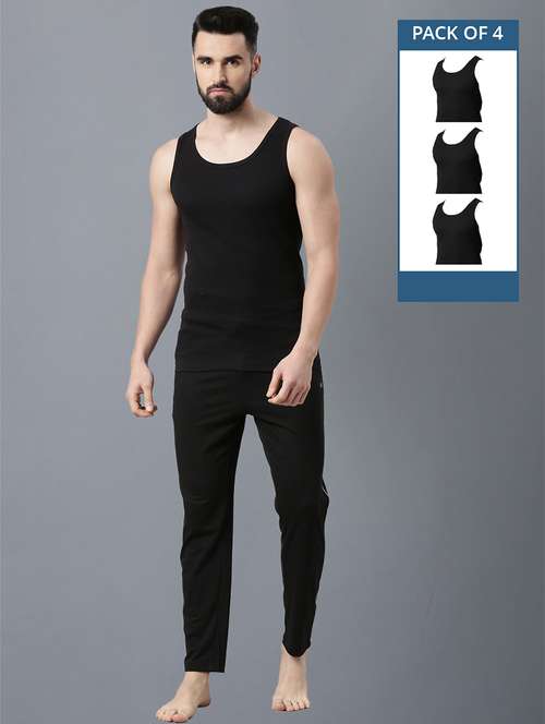 men pack of 4 solid black vest