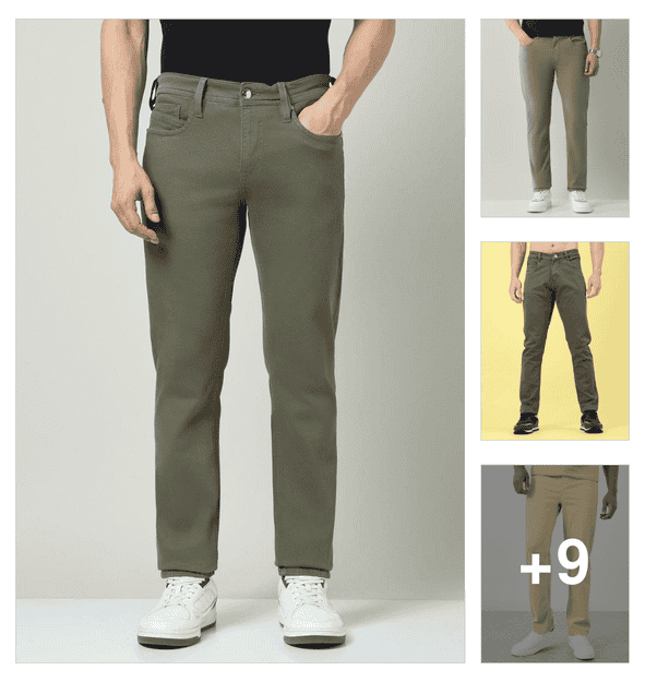 men mid rise solid flat front casual trouser