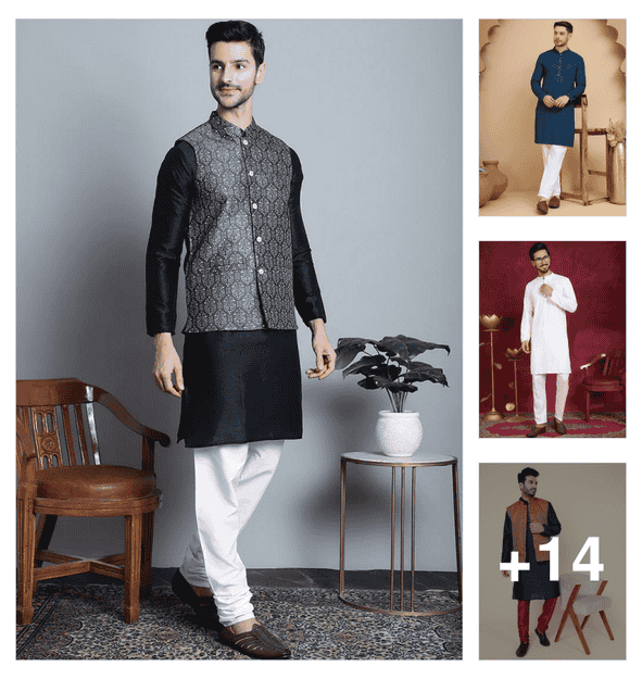 men embroidered mandarin neck long kurta