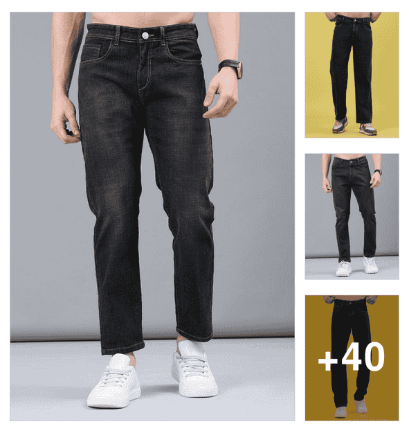men plain mid rise full length straight jeans