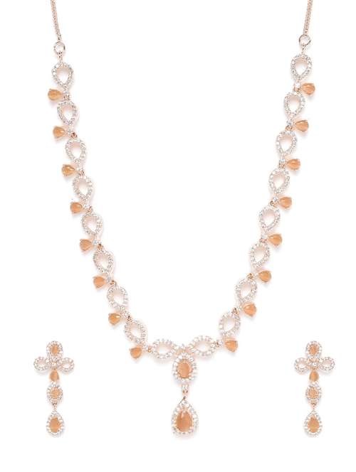 - » peach-colored rose gold-plated ad-studded handcrafted jewellery set