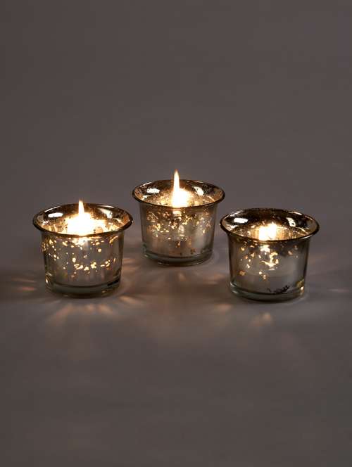 - » metallic silver glass candle/tealight holder