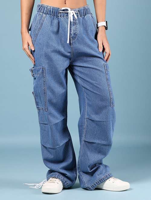 women solid mid rise baggy cargo - 21874061 -  Standard Image - 0 women solid mid rise baggy cargo - 21874061 -  Zoom Image - 0