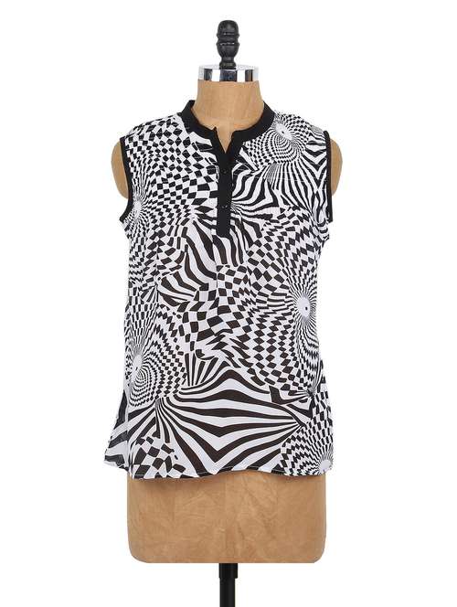 - » monochrome mandarin collar sleeveless top