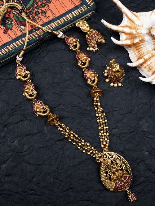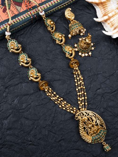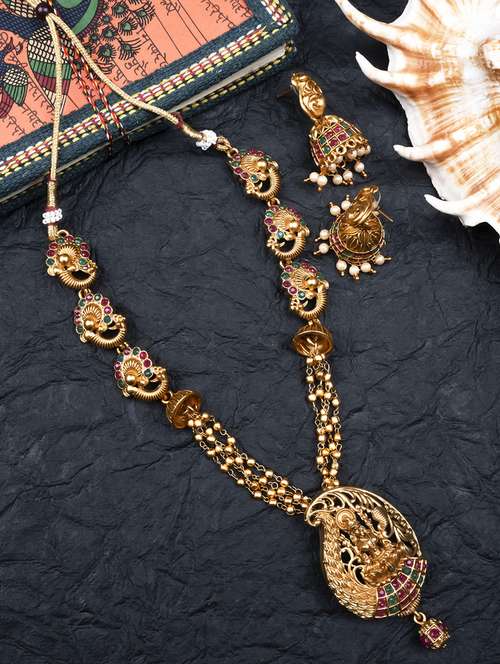 - » women gold plated long paan necklace set