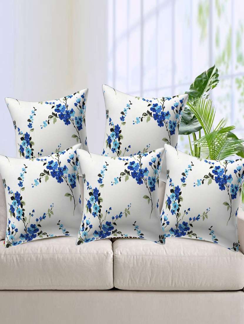 texstylers rversible assorted thick cotton block printed 16x16 inches jaipuri print cushion cover(pack of 5)