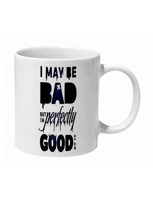 - » white ''i may be bad but im perfectly good at it'' ceramic mug