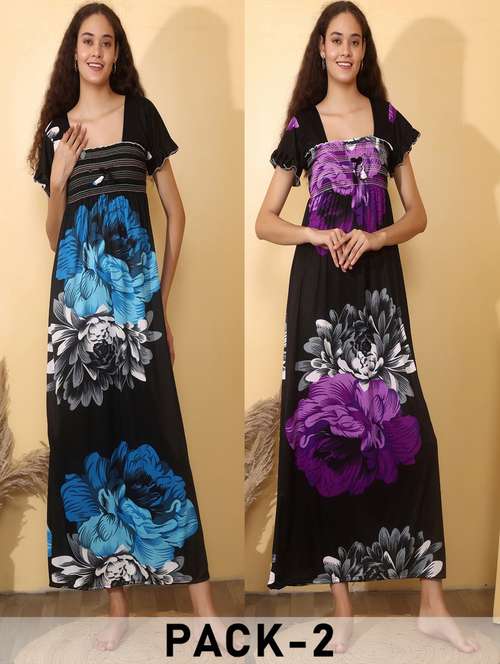 Add comferts and elegance to your night time routine with this pack of 2 floral print nighties, beautifully designed to make feel relaxed and stylish. Upgrade your sleepwear collection with this fashionable nightwear set.