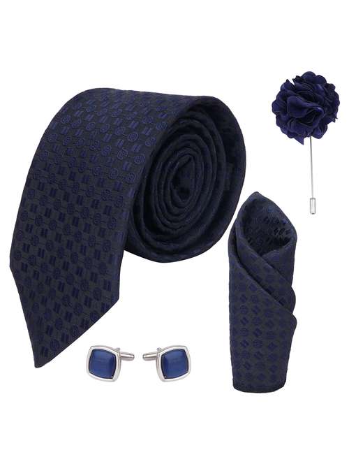 necktie gift set with pocket square cufflinks & brooch pin tie for men