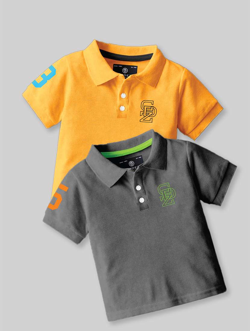 boys polo neck placement printed set of 2 casual t-shirt