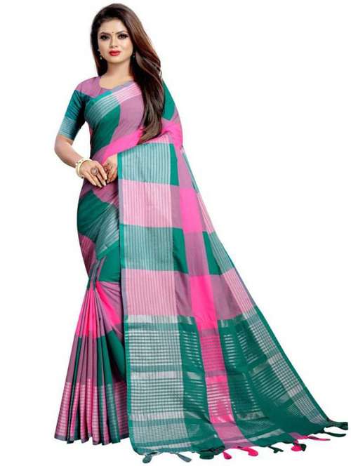 multi colored cotton blend bordered saree with blouse - 21156321 - Very Small Image - 1