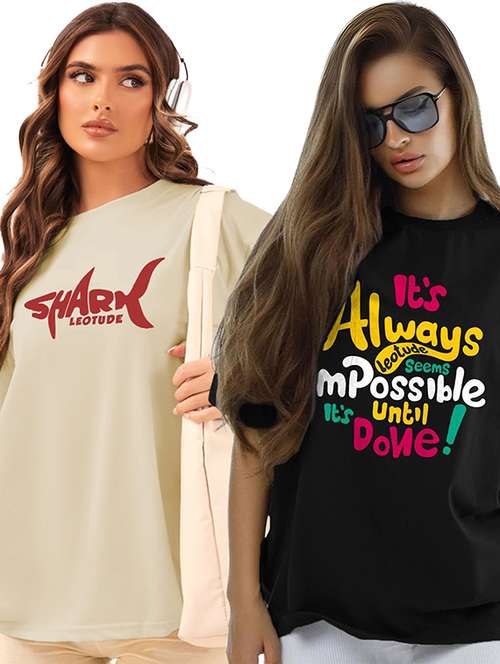 women pack of 2 printed short sleeve oversized t-shirt