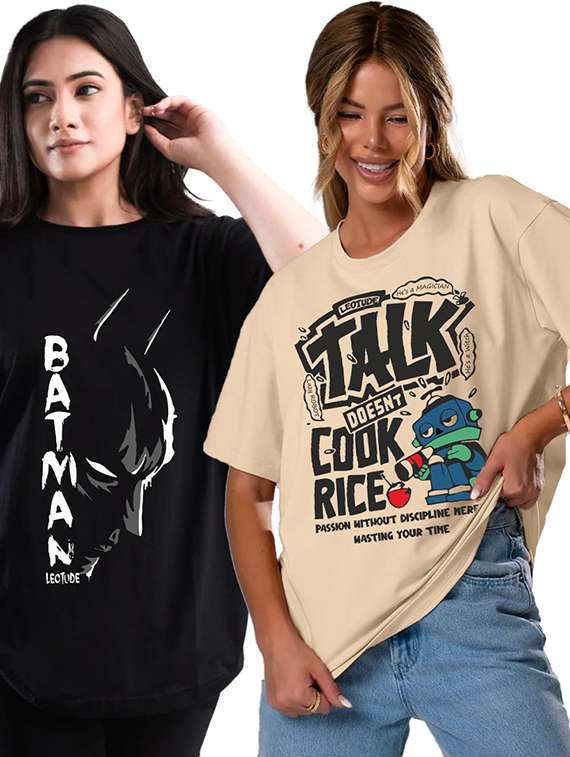 women pack of 2 printed short sleeve oversized t-shirt