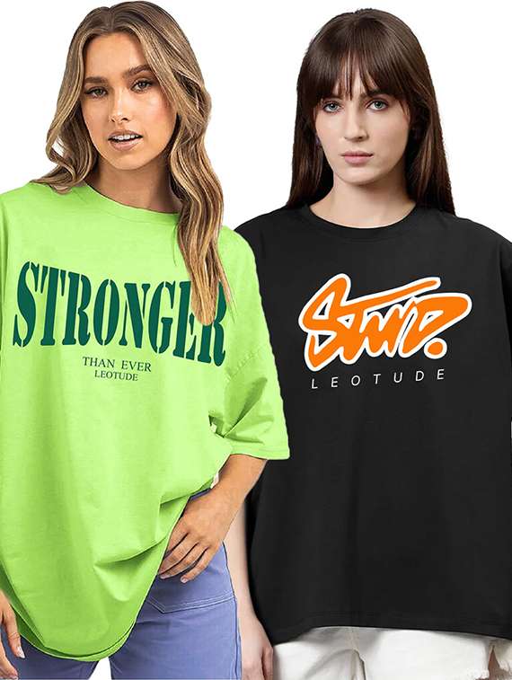 women pack of 2 printed short sleeve oversized t-shirt - 22059635 -  Standard Image - 1 women pack of 2 printed short sleeve oversized t-shirt - 22059635 -  Zoom Image - 1