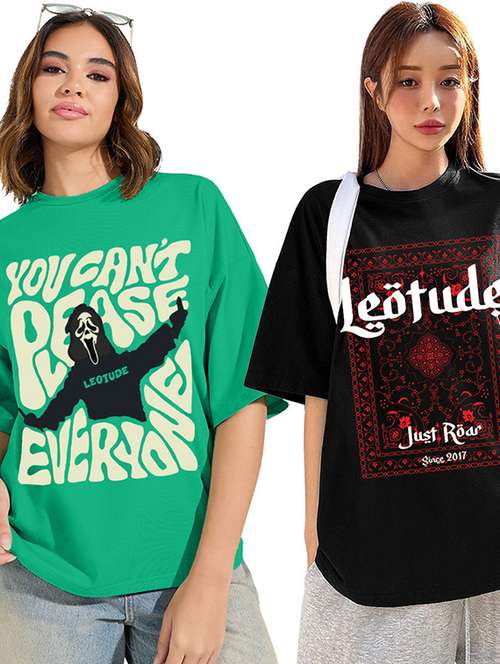 - » women pack of 2 printed short sleeve oversized t-shirt