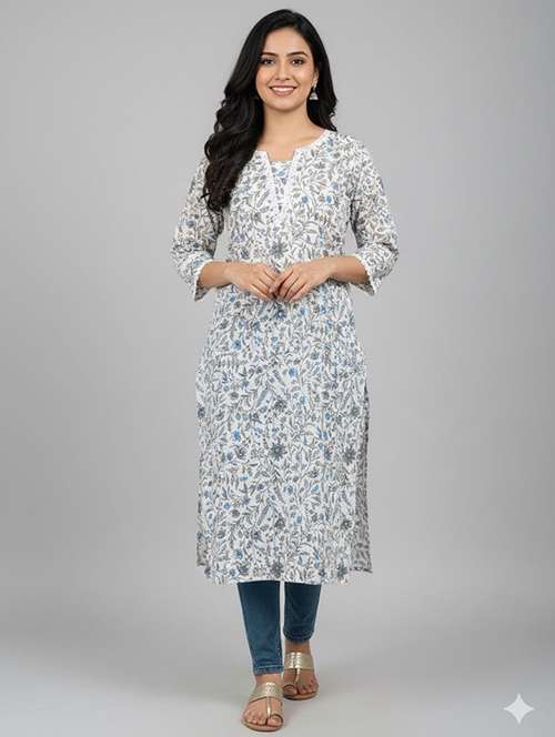 - Grab this beautiful kurta made up of cotton fabric featuring notch neck designs.