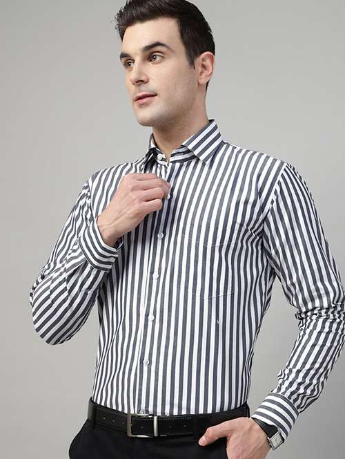 - » men striped collared long sleeve regular fit shirt