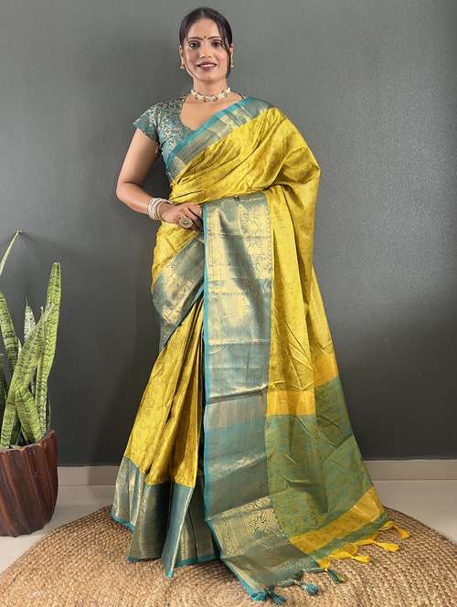 Color : Yellow Green, Made from high-quality Cotton Silk Fabric Woven Saree, giving the saree a stunning look and feel.If you're looking for a beautiful saree to wear to a special occasion, this women's Cotton Silk Woven saree is sure to impress. With a length of 5.50 meters and an additional 0.80 meters of Cotton Silk unstitched blouse material. Available in various colors, this saree is perfect for weddings, parties, and other special occasions.