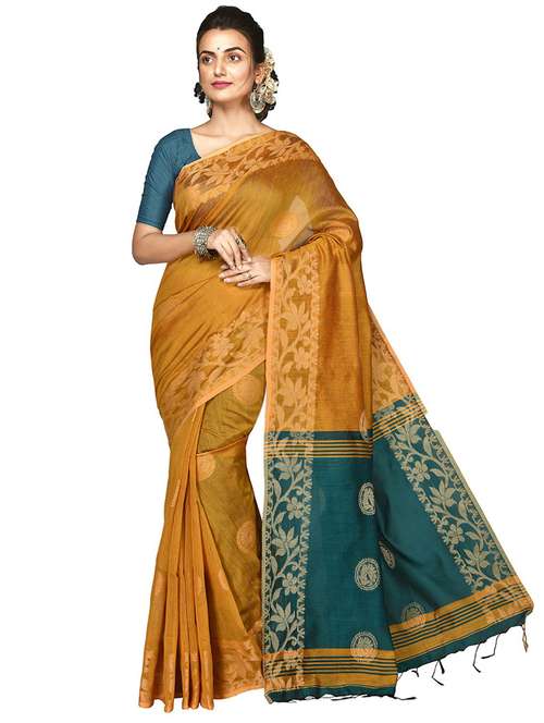 women's self design gold colored saree with blouse - 20614027 -  Standard Image - 1 women's self design gold colored saree with blouse - 20614027 -  Zoom Image - 1