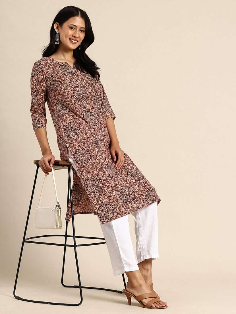 women printed three quarter sleeve straight kurta