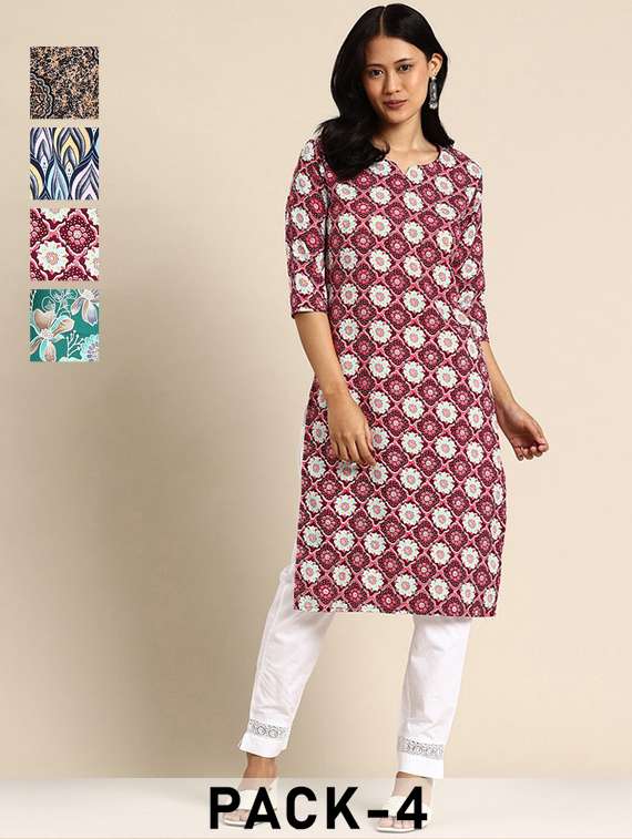 women pack of 4 printed straight kurta