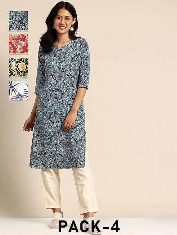 women pack of 4 printed three quarter sleeve straight kurta - 22259949 - Very Small Image - 1