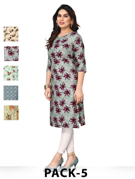 women pack of 5 printed straight kurta - 22269723 - Very Small Image - 1