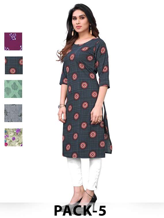 women pack of 5 printed straight kurta - 22269771 - Very Small Image - 1