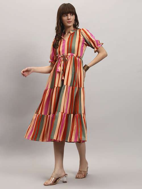 women printed puff sleeves tiered dress - 22309685 - Very Small Image - 1