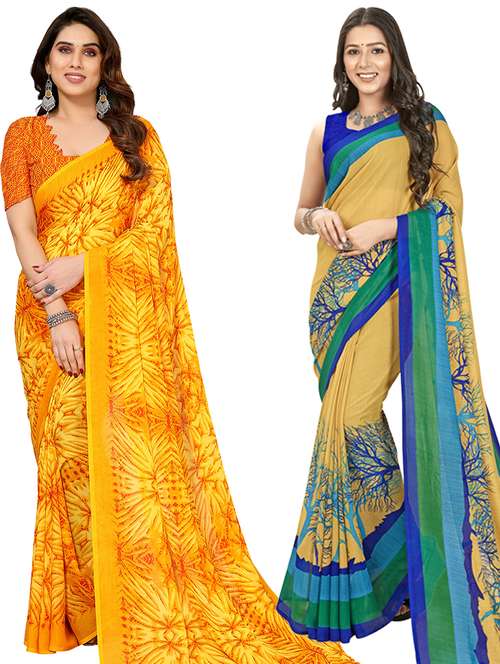 women pack of 2 casual wear combo sarees with blouse