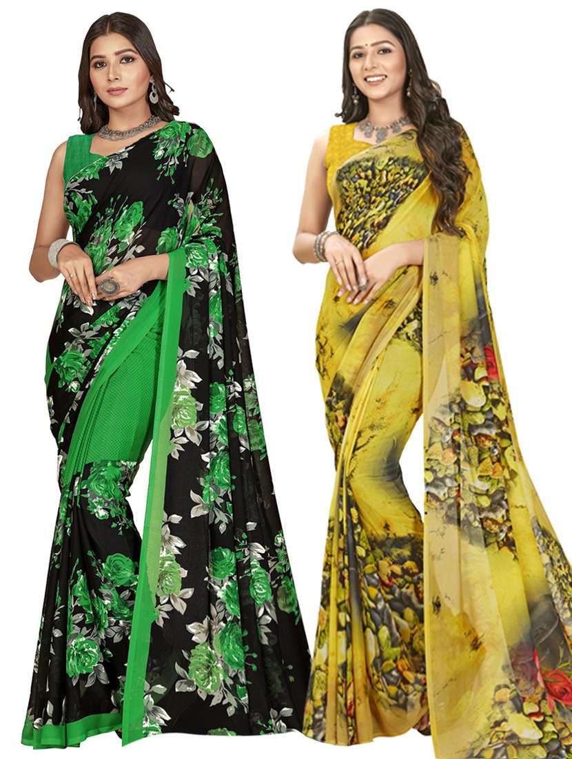 pack of 2 multi colored combo saree with blouse
