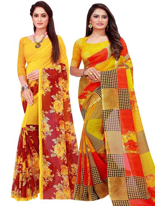 pack of 2 printed saree with blouse - 21397229 -  Standard Image - 0 pack of 2 printed saree with blouse - 21397229 -  Zoom Image - 0
