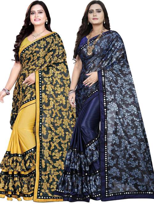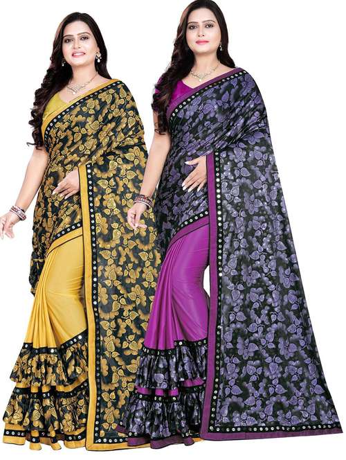 We offer high Quality Range of Printed Sarees that is Designs by our team of Creative Professionals and at the same time perfect mix of modern patterns and contemporary designs of ethnic collection. Look stunningly beautiful in this lovely sari that is decorated with intricately Lycra ruffles. Matching blouse is available to add the glam. There might be color variation due to screen resolution and digital photography. This sari is an ideal for Occasions like casual, traditional, party wear, festival, wedding...